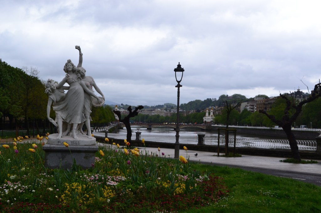 Euskadi nos recibe solemne, afilado, digno: cómo sus montañas, cómo su gente. La ruta nos lleva por parques marrón, granito e índigo en espera de lluvia, ascendemos hacía el norte donde la brisa cambia y nos rodemos de valles verdes con flores amarillas, tejiendo frazadas que cobijan la tierra. El sirimiri vasco, una llovizna que enfría y estorba al turista, cambia el paraje. Todo es esmeralda.