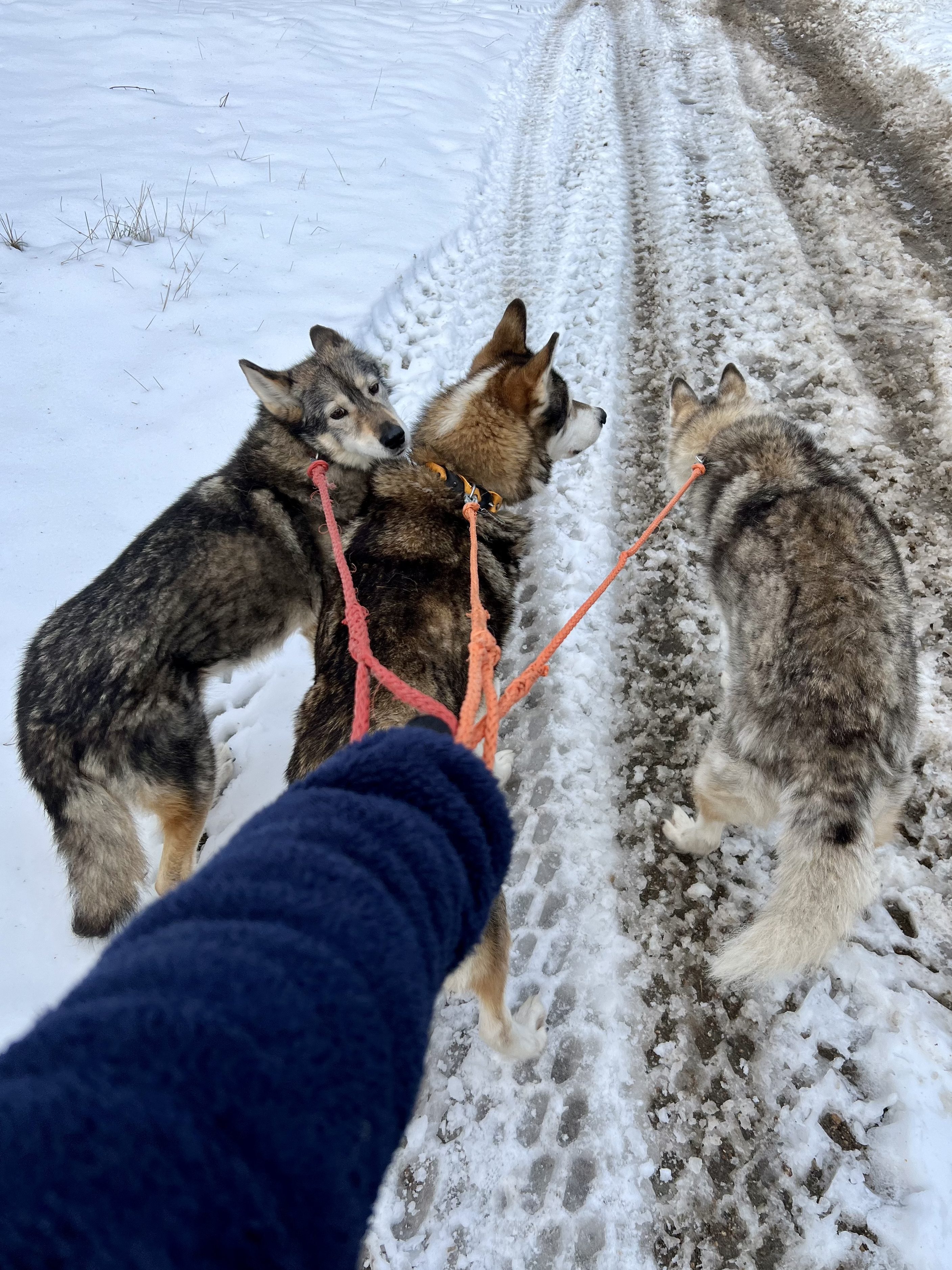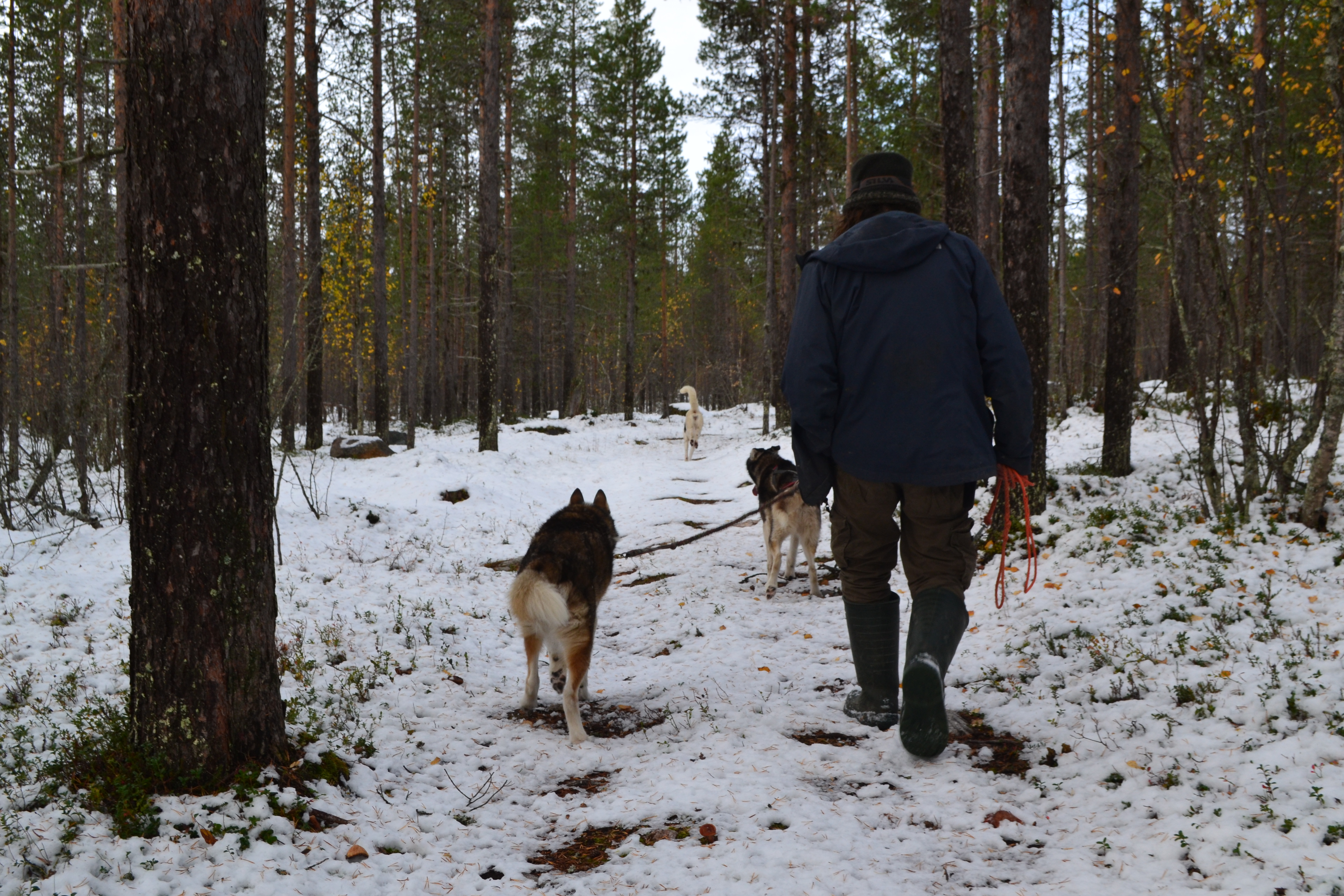Desperté eufórica, recibí instrucciones de ruta de la dueña del hotel que estaba preocupada por mis llantas de verano y me dirigí a la “granja” de Husky. Pagué el tour y el guía reconoció el acento, resulta que el había vivido en Barcelona muchos años y le gustaba hablar español. Así que el plan cambió, decidió sacar a pasear a los perros jubilados y durante las siguientes dos horas camine en la nieve con 3 perros viejitos, una joven que parecía saltamontes tratando de cazar copos de nieve y un inglés que me hablaba en español en el norte de Finlandia. Ya era tarde así que decidí tomar el camino más seguro, más monótono, pero mas seguro. Esta vez el miedo triunfó.