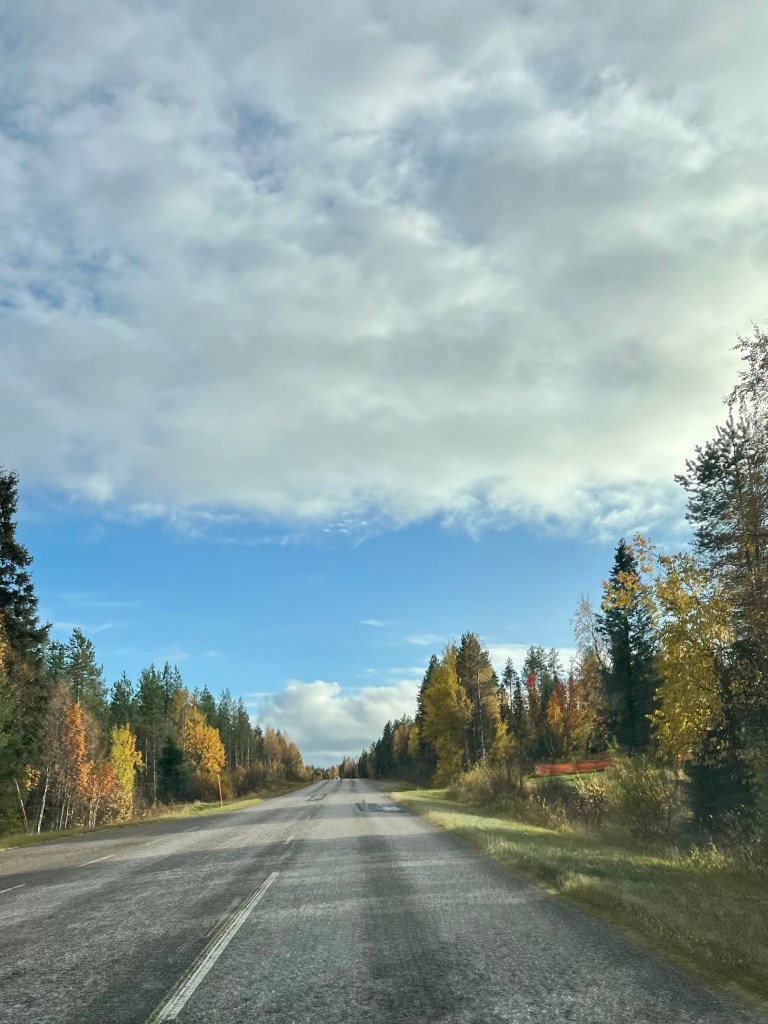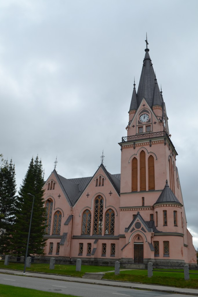Viajar en coche me permite hacer paradas en lugares no tan concurridos por turistas como el Li Environmental Art Park, un pequeño sendero decorado con artes abstracto de tonalidades ambientales. Seguí el camino con la compañía de árboles cada vez más dorados hasta llegar a Kemi con sus casas rojas y su catedral rosa que parecía querer alcanzar el cielo que por fin empezaba a revelar matices de azul.