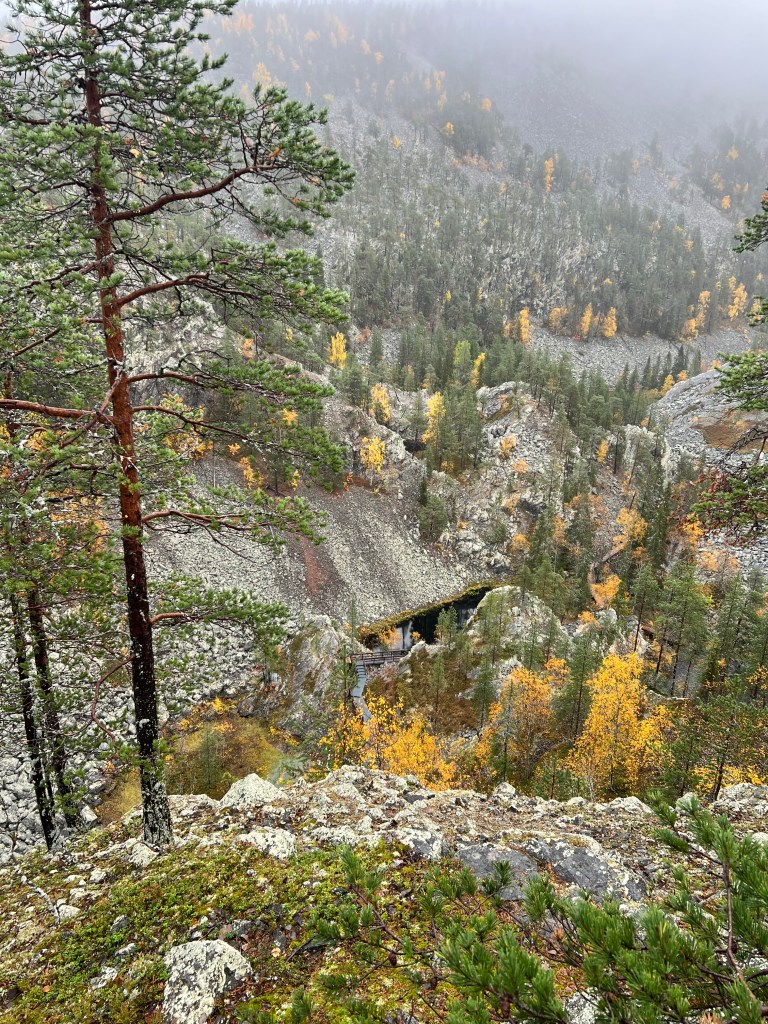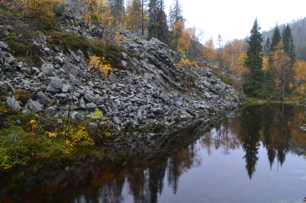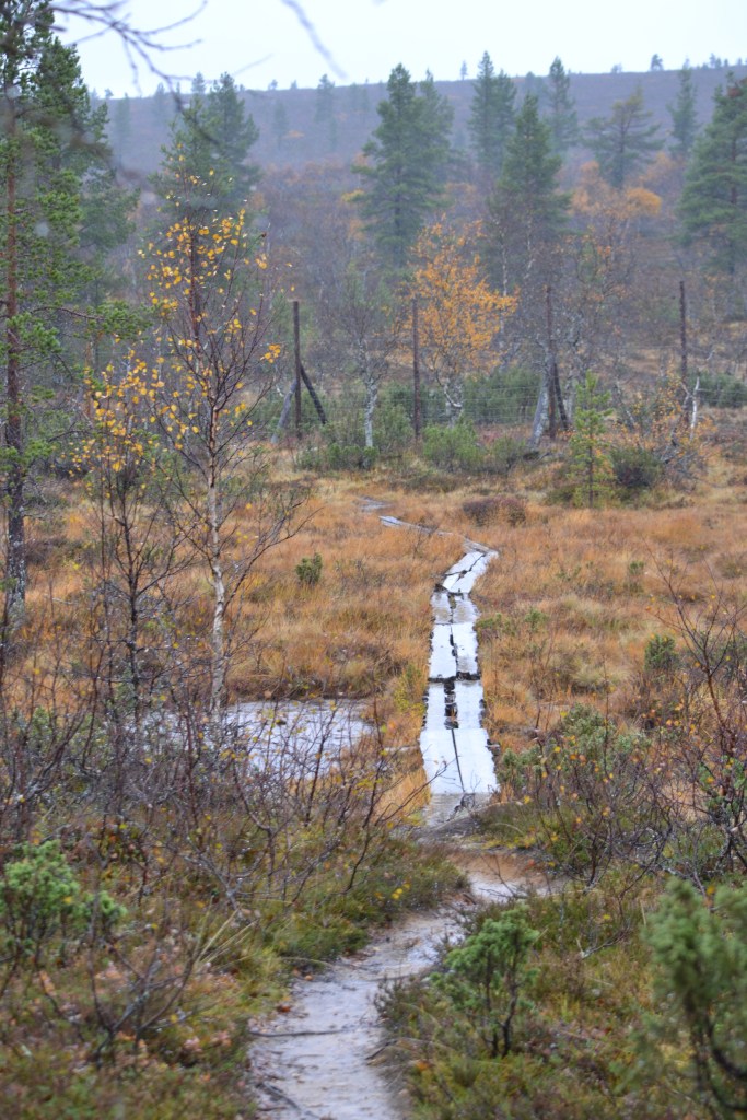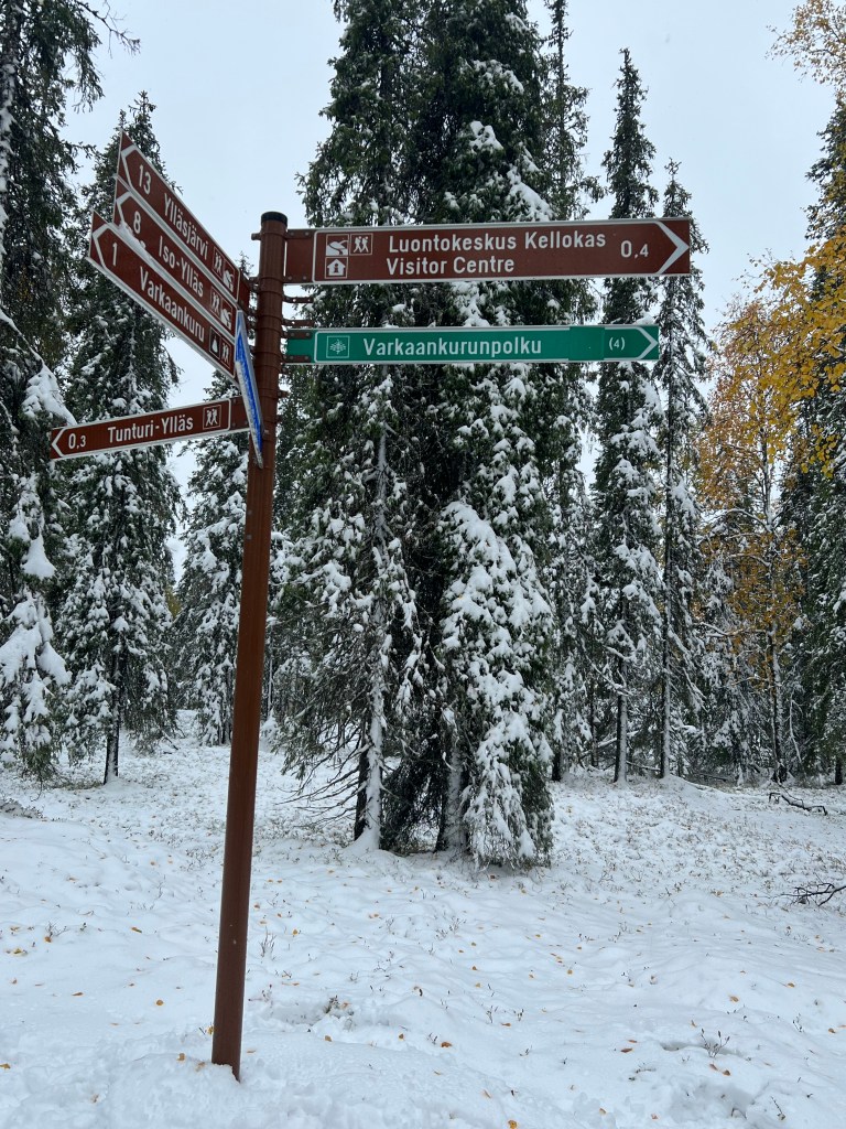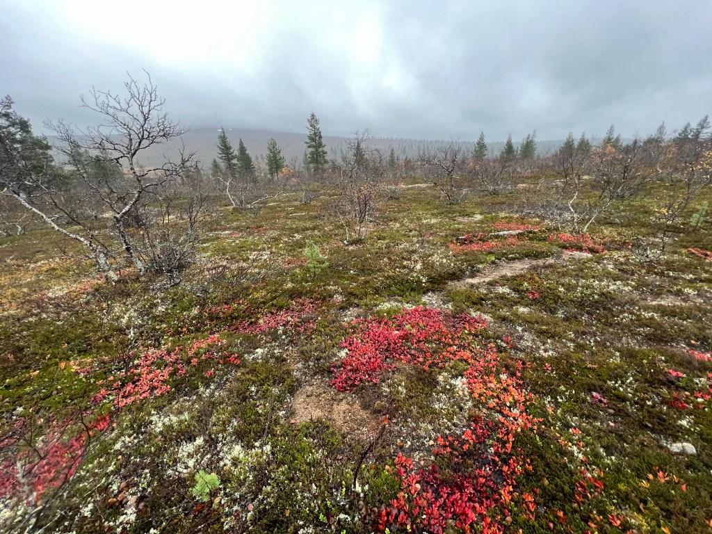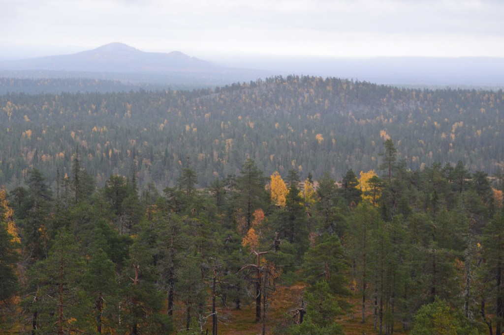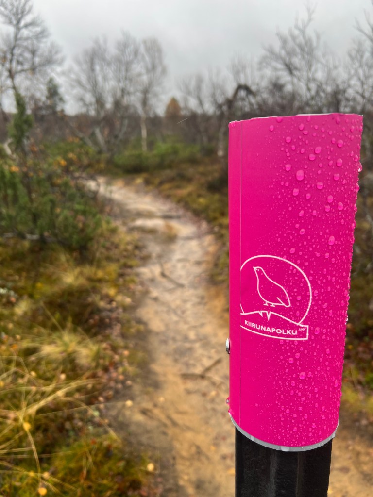 El Parque Nacional Urho Kekkonen me recibió con una llovizna que me hizo decidir por el sendero mas corto (3 km) pero la amplitud de la montaña (uso la palabra libremente, la más alta de Finlandia está a 1331 metros arriba del nivel del mar, esta a 718 metros), los colores que la encarpetaban y la frescura del viento al entrar a mis pulmones me pidieron más, caminé al final dos de sus senderos temáticos: Kiirunapolku sobre la perdiz de roca y Poropolku sobre los senderos que hacen los renos al pastar.