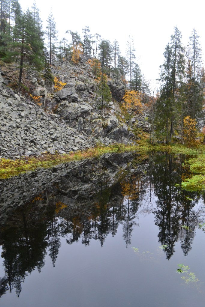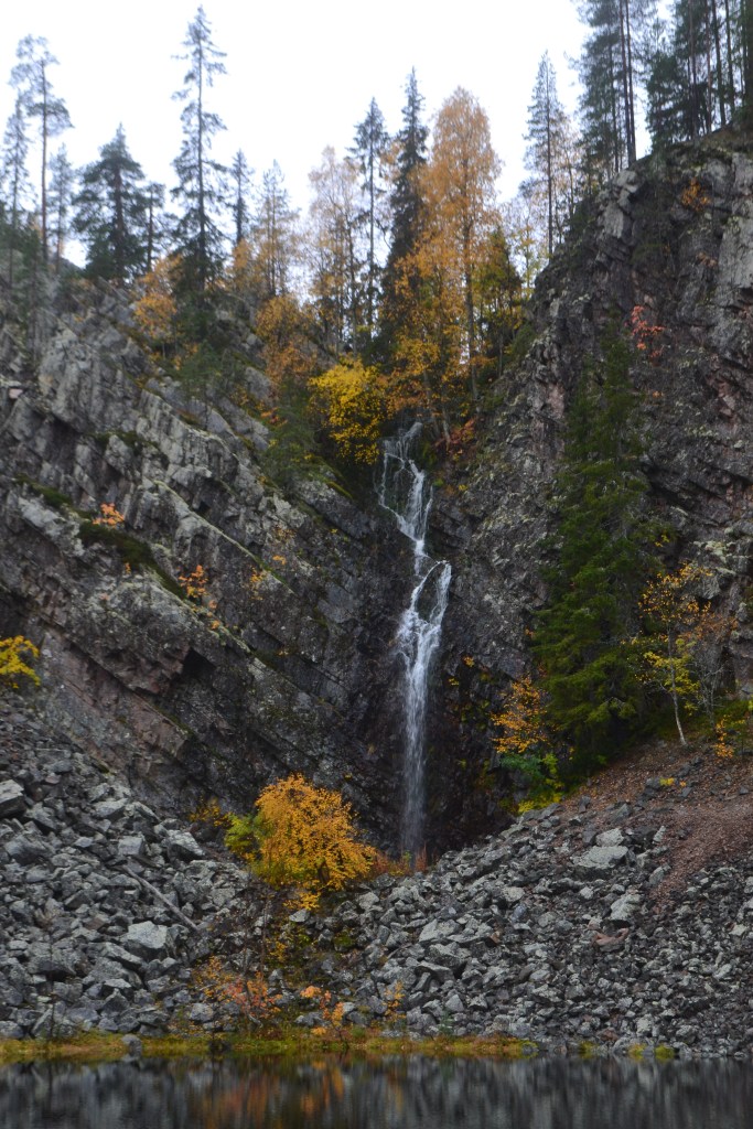 Empecé el día perdida, por más que buscaba no encontraba el camino al cañón del Parque Nacional Pyhä-Luosto. Subí, bajé, giré. Nada. Desesperada seguí a un grupo de turistas con la certeza de que nunca encontraría el cañón. Ciegamente me encaminé por senderos, escaleras y rampas de madera mientras platicaba con un señor que formaba parte del grupo. Súbitamente ahí estaba el cañón en todo su esplendor. Caminé con el grupo hasta la cascada, donde me despedí para subir a la cima del cañón donde los colores se tornaban más cobrizos, el aire se congelaba y mi respiración era cada vez más agitada, entonces entendí el mensaje: no todo lo puedo controlar, a veces para encontrar el camino hay que seguir a la persona (o en este caso grupo de personas) correcto.