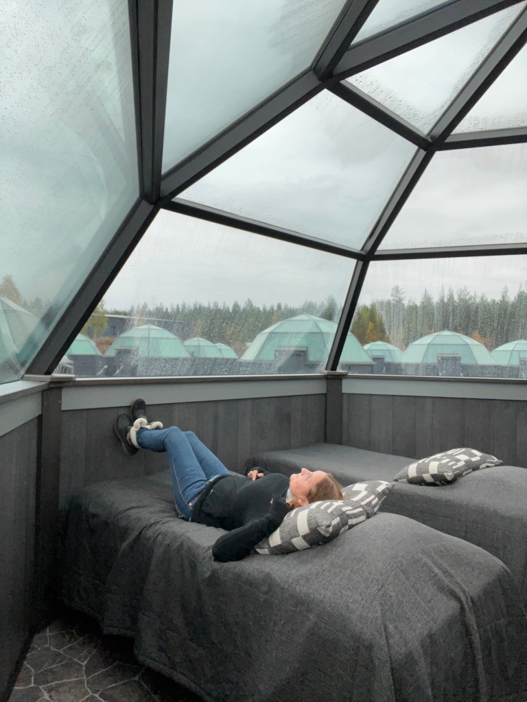 Llegué al fin a Rovaniemi, la capital de Laponia y hogar de Santa Claus (al que decidí no ir a visitar). Preferí pasar el tiempo que tenía ahí en el Artikum, un museo lleno de información sobre el ártico y los problemas ambientales que enfrentan las especies y humanos que viven ahí. Cuando salí esperaba ver el cielo abierto, la noche la pasaría en un hotel iglú, tristemente las nubes no abrieron pasó a las estrellas, menos a una aurora boreal. Cené frente a una chimenea donde se cocinaba salmón de manera tradicional, yo probé por primera (y última) vez el reno. Dormí bajo la lluvia cubierta por una cúpula de cristal, las gotas entonaban una dulce canción de cuna mientras me absorbía el abrazo tibio de la cama que permitió a mi cuerpo agotado por fin descansar.