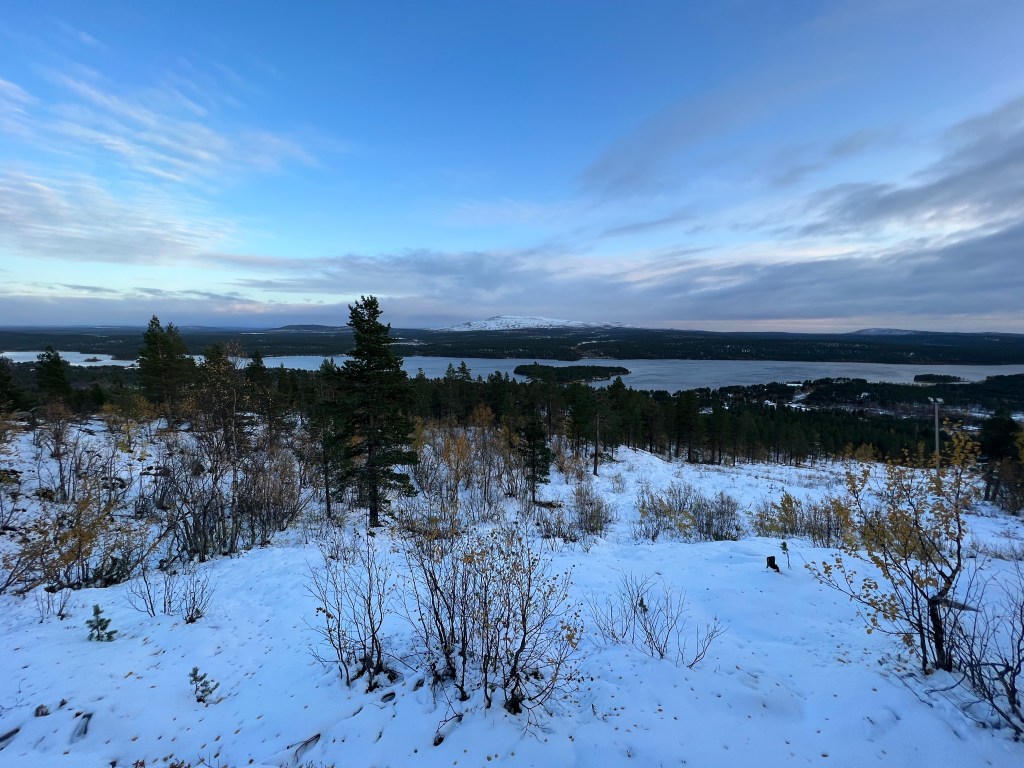 El camino de regreso no me pareció tan grave, valiente después de la mañana adrenalínica. Había conquistado el miedo. Las carreteras de Laponia son más rurales: sin pavimentar, angostas y a -3ºC semi congeladas, no fue fácil manejarlas, pero las vistas de árboles extendiéndose por kilómetros en soledad absoluta lo valen. Llegué cansada a Hetta pero el Parque Nacional Pallas me llamaba, las nubes se habían disipado y una cascada de rayos de sol mojaba el Tunturi (en español no encontré palabra, pero son montañas pertenecientes a la Cordillera Escandinava, que forma la «columna vertebral» de la península y se describen como montañas bajas, desnudas y redondeadas).